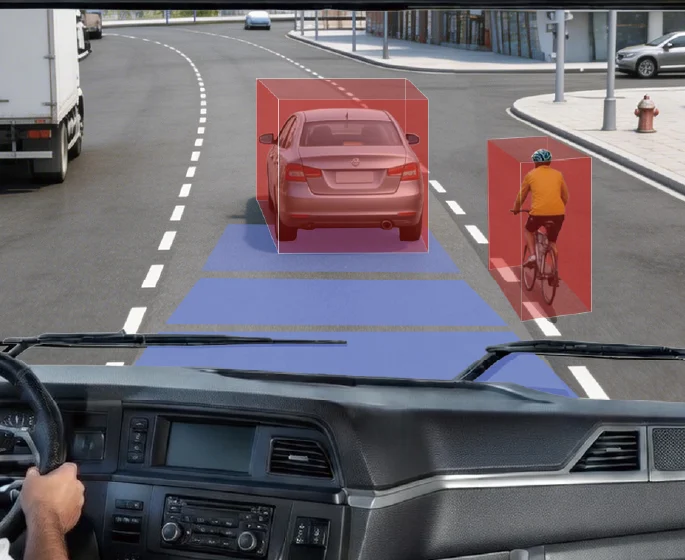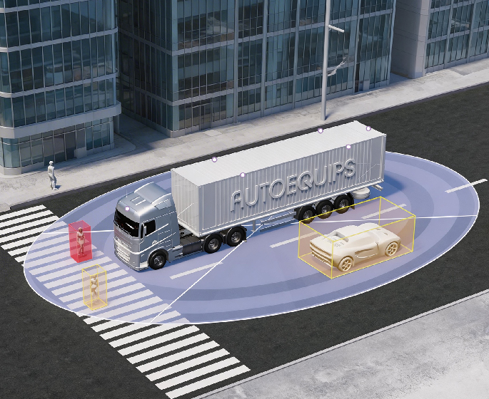 AUTOEQUIPS focus on active safety algorithms for commercial vehicles, with in-house AVM 360 surround view, MOIS moving-off protection, RVCS rear view, and BSD/BSIS blind-spot monitoring, all compliant with UN ECE R151/R158/R159. Built on a Perception–Planning–Execution architecture, our system fuses camera and radar data with detection, tracking, distance and trajectory estimation plus model-lightweighting to deliver high-accuracy risk awareness on low-compute edge platforms.